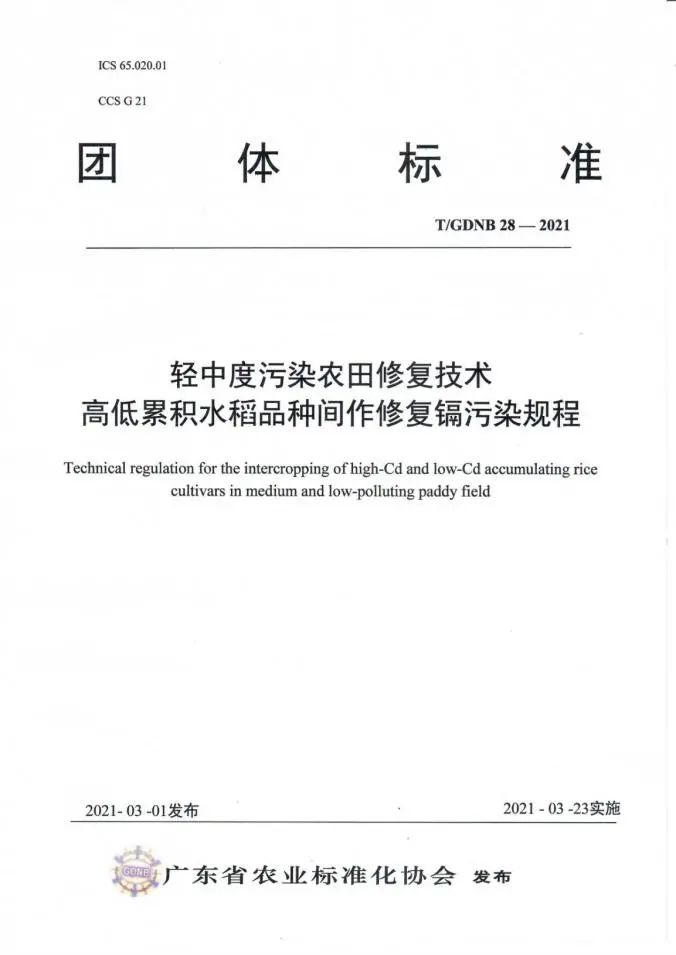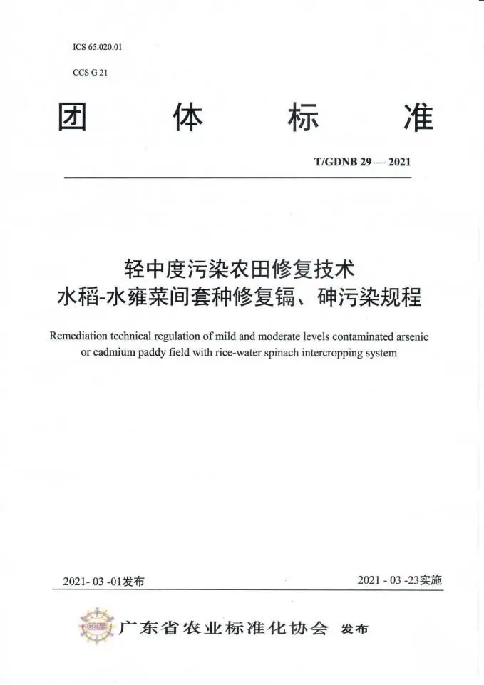 【CONGRATULATION】 喜 報 熱烈祝賀 我司參與制定的標準 頒布實施 我司與華南農(nóng)業(yè)大學(xué)資源環(huán)境學(xué)院、中國科學(xué)院地理科學(xué)與資源研究所等單位合作開展高低累積水稻品種間作修復(fù)鎘污染,水稻-水雍菜間套種修復(fù)鎘、砷污染,東南景天與蠶豆間作冬種修復(fù)鎘污染等研究工作,聯(lián)合起草了《輕中度污染農(nóng)田修復(fù)技術(shù) 高低累積水稻品種間作修復(fù)鎘污染規(guī)程》(T/GDNB28-2021)、《輕中度污染農(nóng)田修復(fù)技術(shù) 水稻-水雍菜間套種修復(fù)鎘、砷污染規(guī)程》(T/GDNB29-2021)、《輕中度污染農(nóng)田修復(fù)技術(shù) 東南景天與蠶豆間作冬種修復(fù)鎘污染規(guī)程》(T/GDNB30-2021),通過廣東省農(nóng)業(yè)標準化協(xié)會組織的標準審定并發(fā)布實施(2021年3月23日實施)。 廣東韶科環(huán)保科技有限公司 20121年4月9日